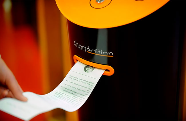 Short Édition es una editorial francesa que, en 2011, tuvo una idea maravillosa para darle visibilidad a las nuevas historias (cortas) de autores contemporáneos: propulsar la literatura. Visto en perspectiva, y especialmente en un momento como el actual, no sólo era un reto, sino también una bonita responsabilidad. Una responsabilidad que compartimos todas esas personas y empresas que están relacionadas con el mundo de las letras, de la cultura en general. De ahí que iniciativas como este Dispensador de Ficción (déjame que lo llame así), resultan un soplo de aire fresco y una clara demostración de que no todo está inventado en el sector. Y su éxito, arrancó como una startup y ahora no tiene fronteras, es una noticia fantástica.