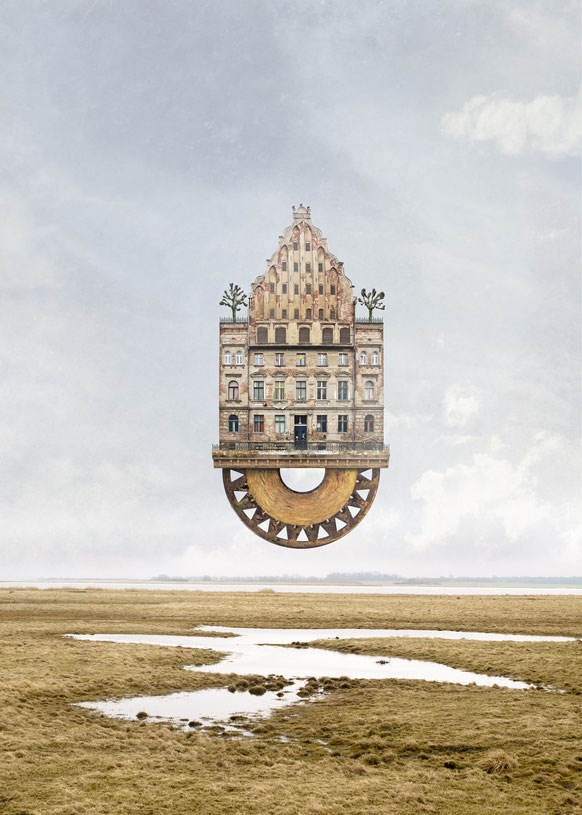 Y es que esta surrealidad nace de su fascinación por construir pequeñas creaciones artísticas en el laboratorio fotográfico de su padre cuando era pequeño. Unas tijeras y pegamento, no necesitaba nada más para empezar a diseñar sus primeros edificios imposibles. Desde entonces ha sublimado su habilidad hasta acabar diseñando estas obras que son, lo reconocerás, tan fabulosas (en todos los sentidos) como fascinantes.