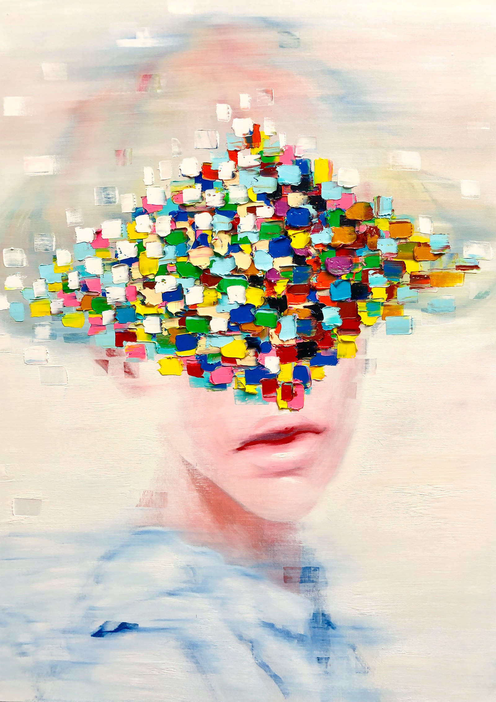 Tal vez por eso, estos retratos desdibujados por sus propios pinceles, usando trazos gruesos, coloristas, intensos, acaban convirtiéndose en una reflexión sobre tú mismo, sobre lo que sientes y lo que vives, sobre cómo lo sientes o cómo lo vives. Tal vez no es sólo lo que se escondía detrás de esas abruptas marcas, tal vez es lo que todos escondemos en algún momento detrás del rostro que pintamos cada día.
