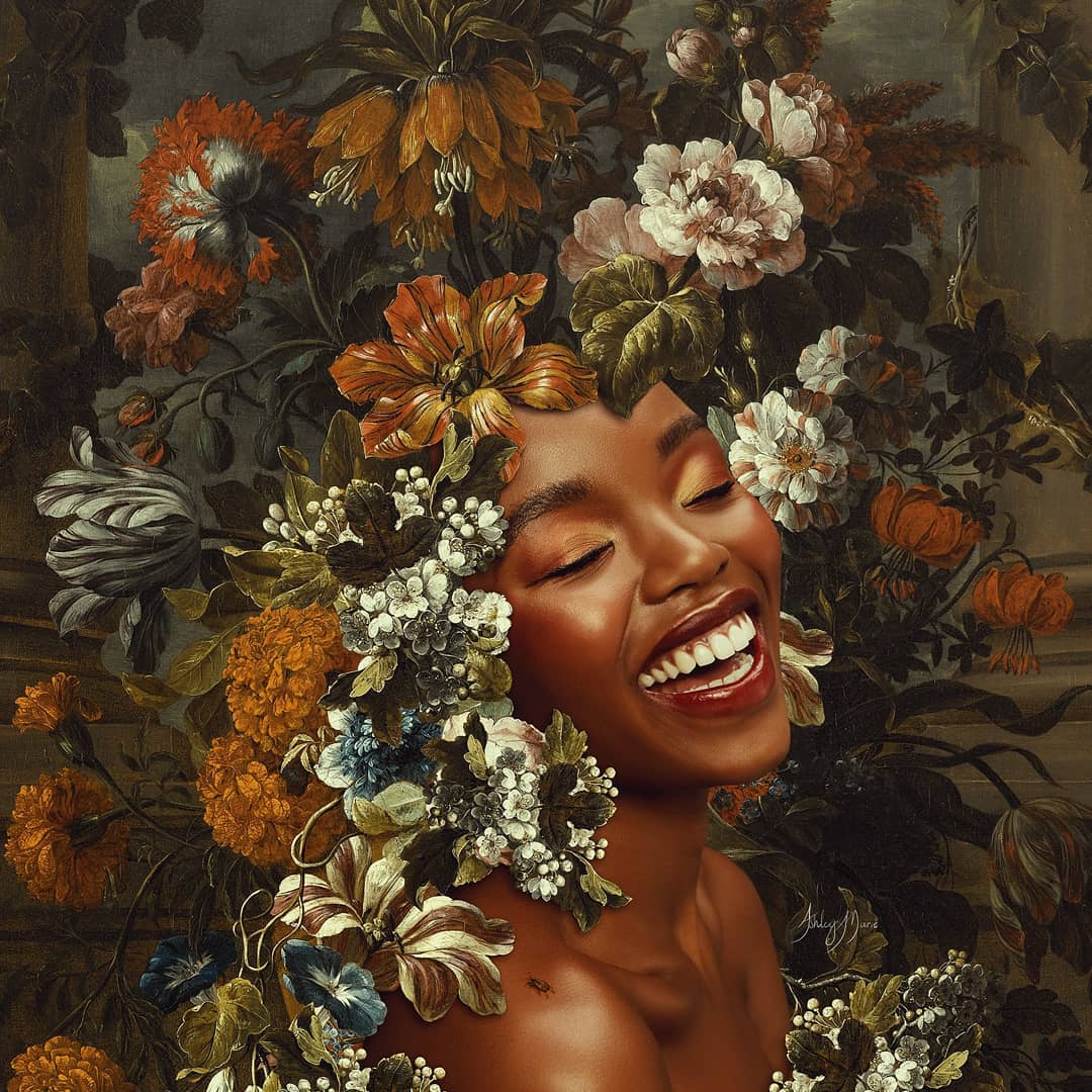 … vale, igual no exactamente pero al final, en un sentido estricto, la obra de la artista Ashley Marie es también un bonito y vibrante ejercicio de creatividad. Todo nace de una pregunta: «¿Por qué estamos tan obsesionados con la belleza?» Y es que en un mundo en el que cada vez se estandariza más ese ideal, reflexionar sobre ello a partir de este proyecto «Flowers Portraits» es algo más que metafórico: la belleza es fugaz. La belleza se marchita. Como las flores.