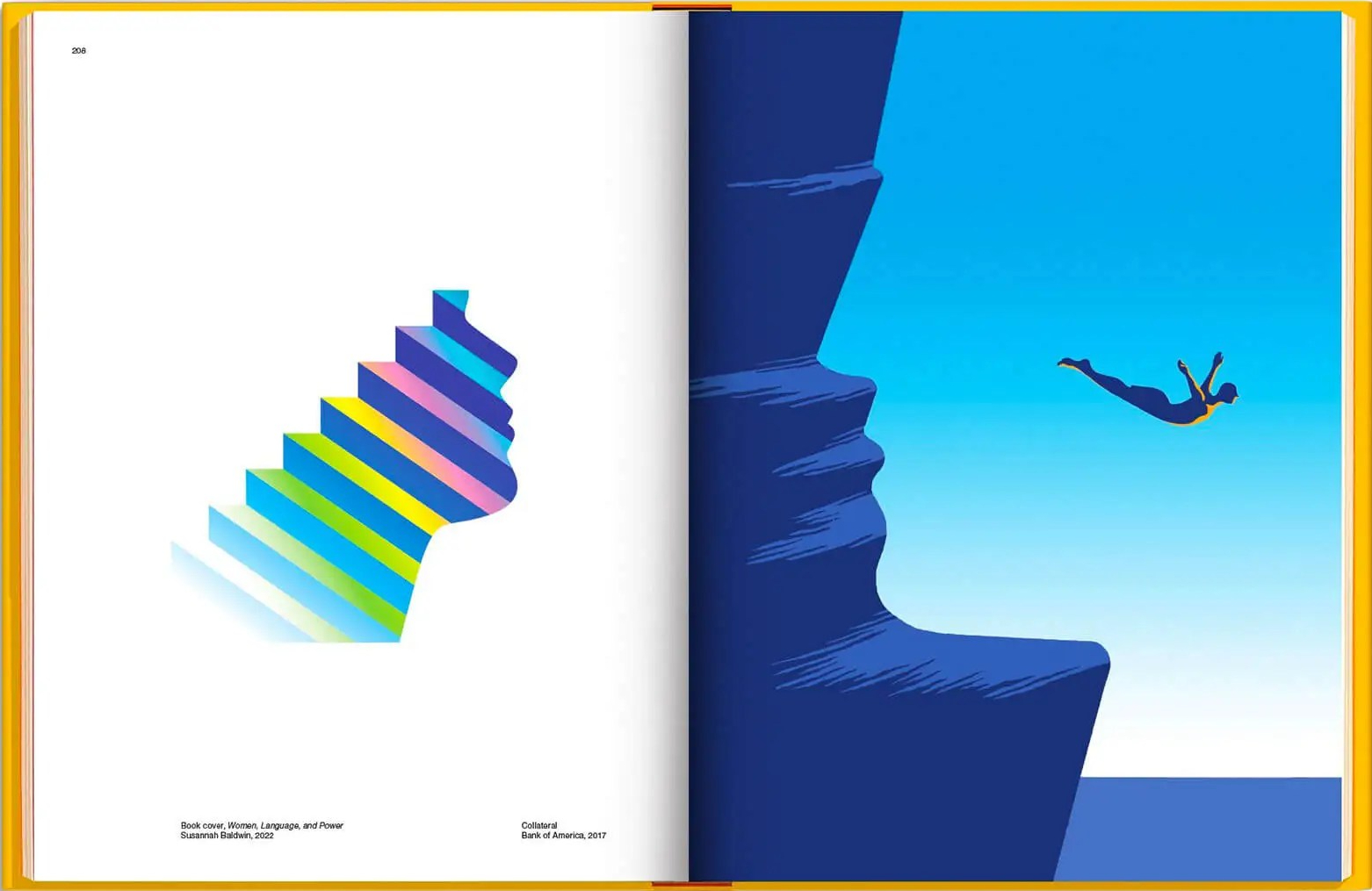 Memorable. Hermoso. Un trabajo que hablara. Ese era el objetivo de Frazier. Y, sin duda, su larguísima lista de clientes y creaciones se encargan de poner el listón en su justa altura (allá arriba, en ese lugar al que sólo llegan los grandes). Adobe, American Express, Boeing, Chevrolet, Deloitte, UA, Pfizer, PNB Paribas, Google, o publicaciones como The New York Times, Fast Company o The Atlantinc, entre muchas otras cabeceras y compañías top, han tenido el honor de verse ilustradas en alguna ocasión por su talento. Y este «Drawn» es un buen recopilatorio de alguna de esas colaboraciones.