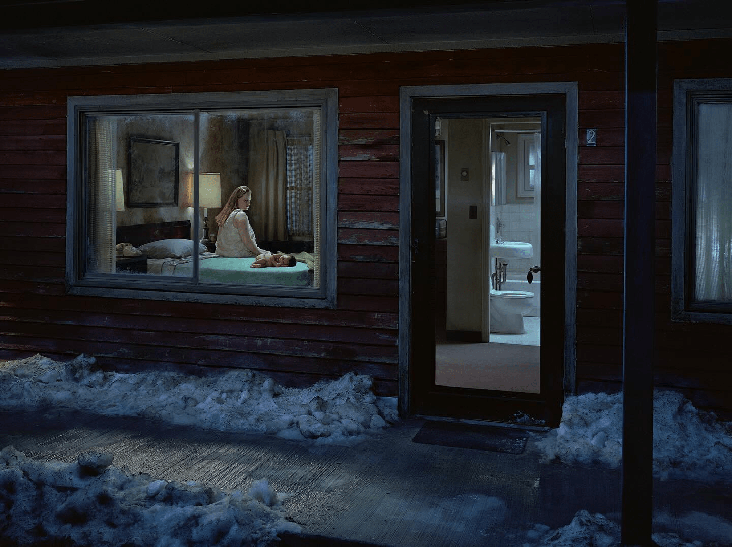 Podría parecer cine. Pero es fotografía. Una fotografía tan precisa, tan controlada, tan cinematográfica, que consigue hacer de lo cotidiano un territorio extraño. Desde Beneath the Roses hasta Cathedral of the Pines, Crewdson ha convertido los suburbios americanos en el escenario de un drama sin nombre. No hay grandes diálogos, ni épica. Hay tensión muda. Soledad compartida. Rutina convertida en eco.