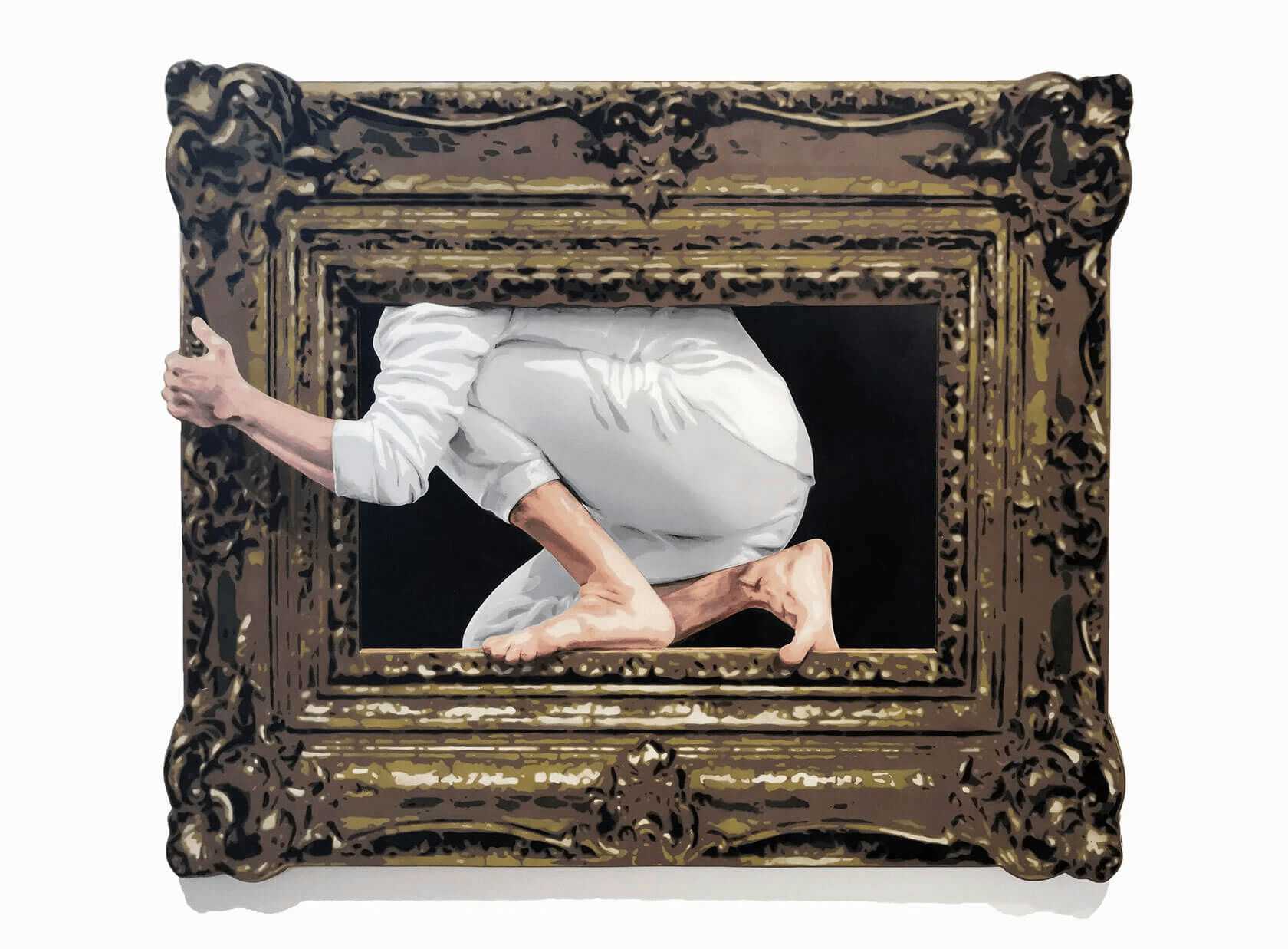 Porque lo que consigue E.LEE es una conversación en tres dimensiones. Gracias a su técnica trompe l’oeil, las superficies planas cobran una vida inesperada. De repente, una figura de KAWS parece estar a punto de dar un paso fuera de su pintura, o un personaje de Lichtenstein se asoma desde un marco dorado, rompiendo la barrera entre la obra y el observador. Es como si el arte, consciente de su propia historia, decidiera interactuar contigo de una forma completamente nueva y traviesa.